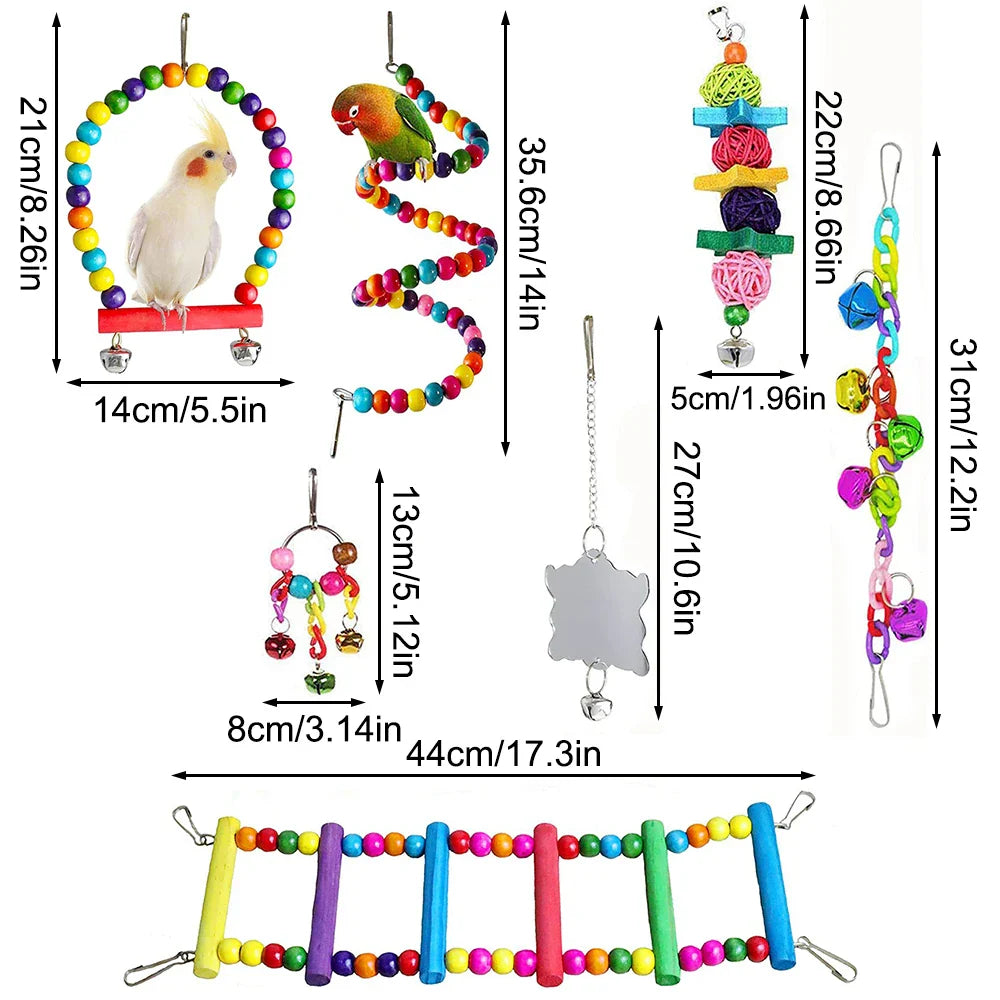 7-teiliges Papageienspielzeugset aus Holz und Kunststoff, für kleine Vögel, 21 x 14 cm
