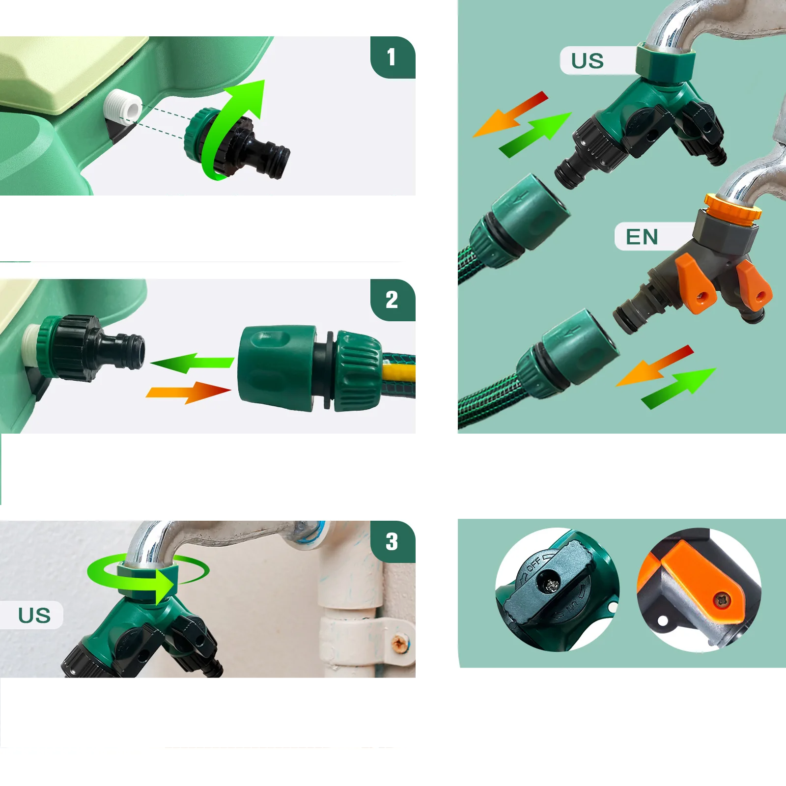 🔧 Einfache Installation – Anschluss an Standard-Gartenschläuche, kein Strom erforderlich.