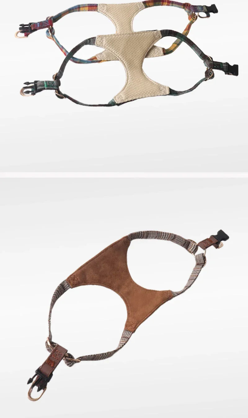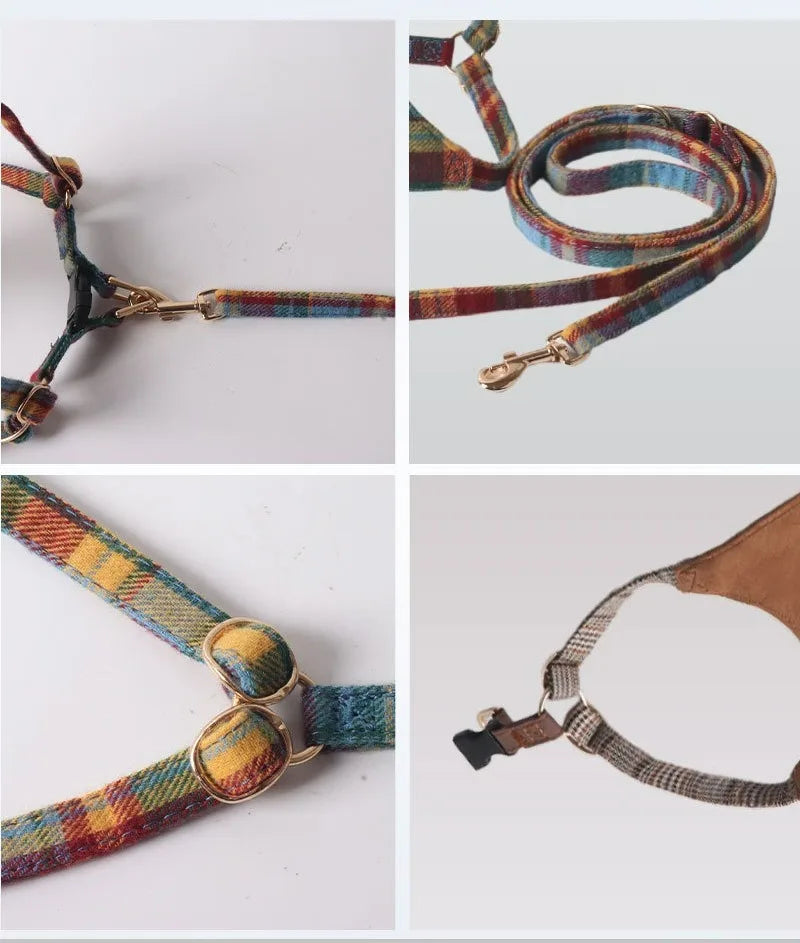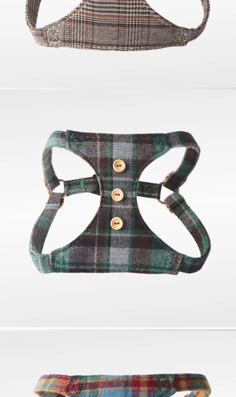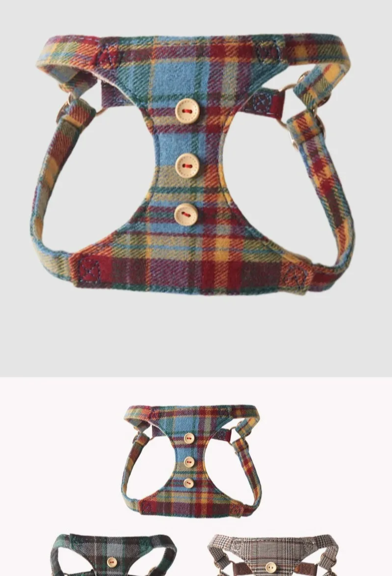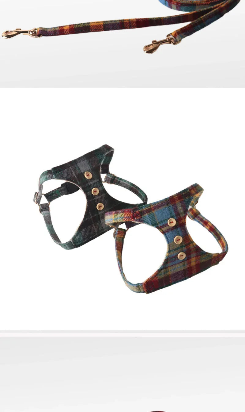 🐶 British Plaid – Verstellbares Hundegeschirr mit Multifunktionalem Leinen-Set im Britischen Stil