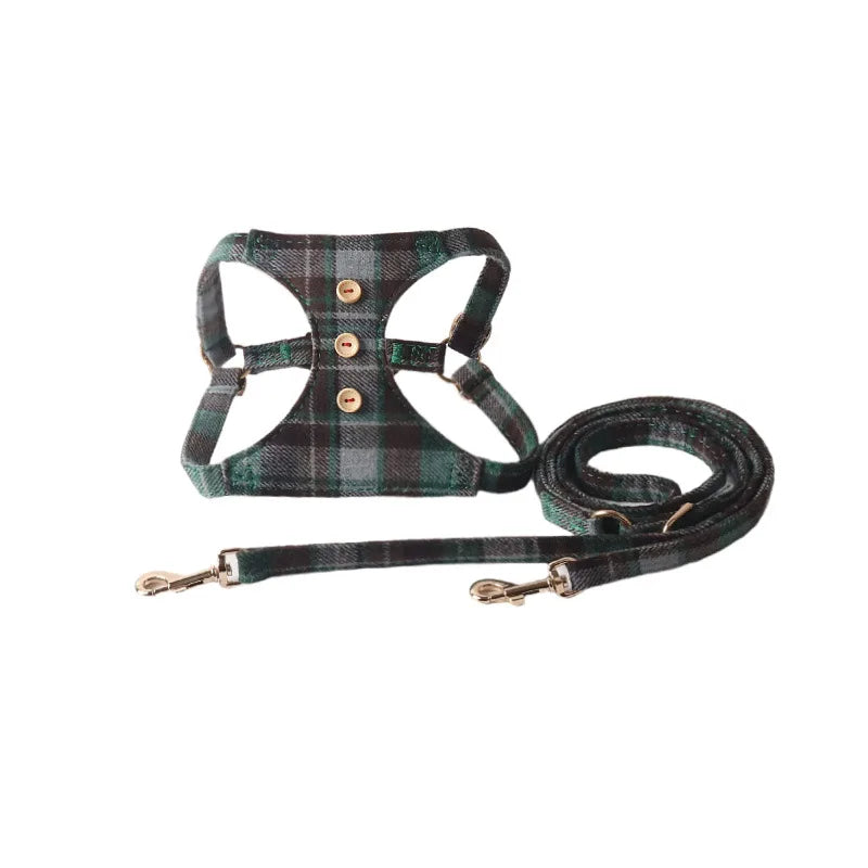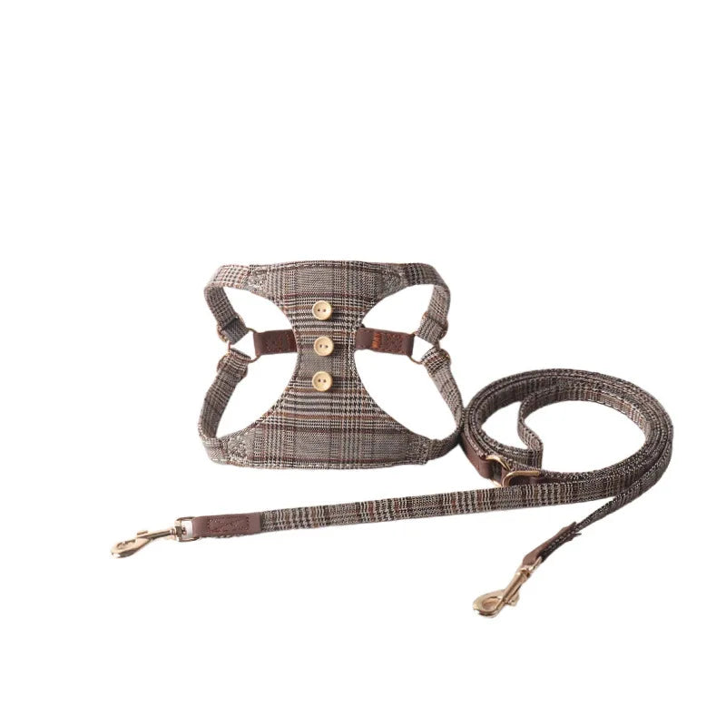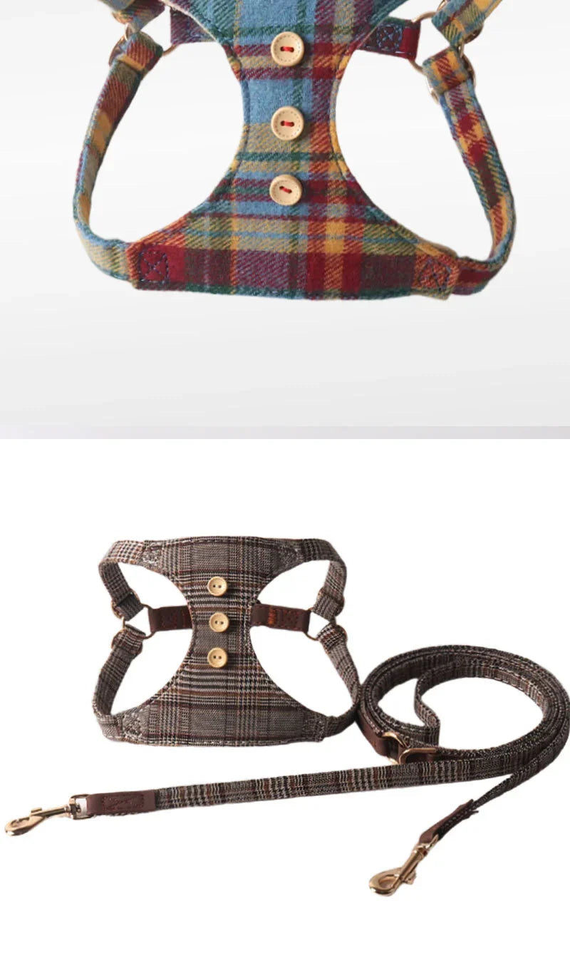 Britisches Karomuster – Verstellbares Hundegeschirr mit multifunktionaler Leine im britischen Stil