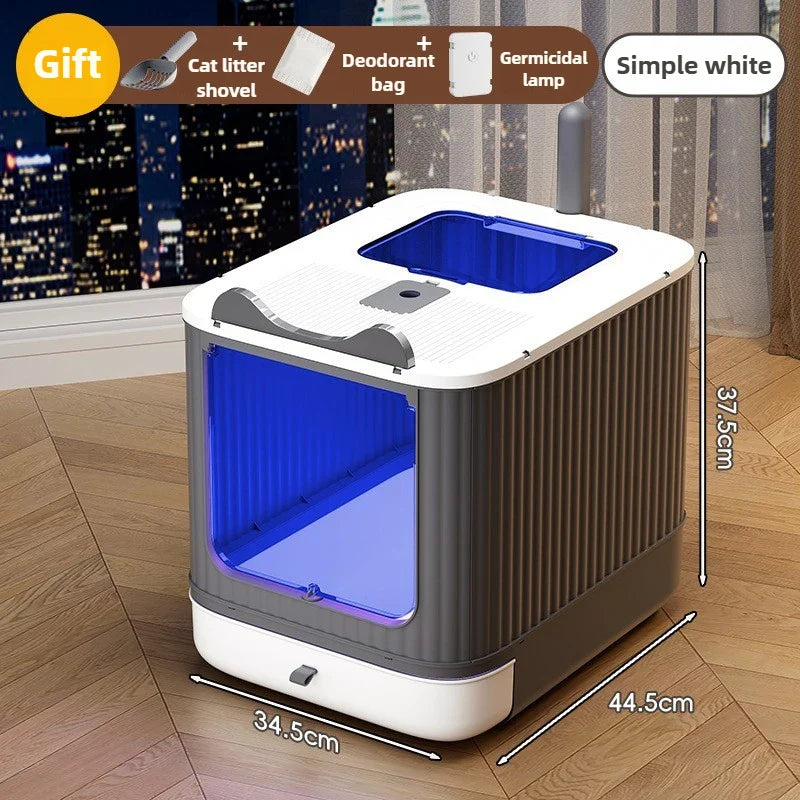 Verbessern Sie das Badezimmererlebnis Ihrer Katze mit unserem vollständig geschlossenen, extra großen Katzenklo. Dieses Katzenklo wurde entwickelt, um Unordnung und Gerüche zu minimieren und sorgt gleichzeitig für ein saubereres Zuhause und Privatsphäre für Ihre Katze. Das spritzwassergeschützte Design und die geruchsneutralisierenden Eigenschaften machen es zu einem unverzichtbaren Produkt für jeden Katzenbesitzer.