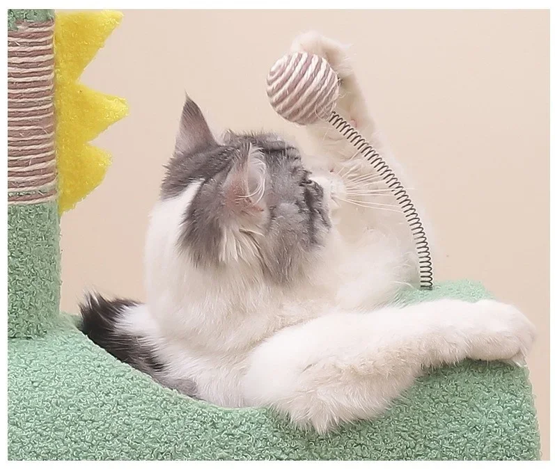 Dieser stilvolle Kratzbaum mit verspieltem „Lovely Wind“-Design besteht aus robustem Holz und langlebigem Spanplattenmaterial und ist ideal für Katzen, die gerne klettern, kratzen und entspannen.