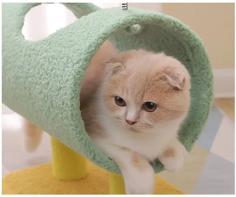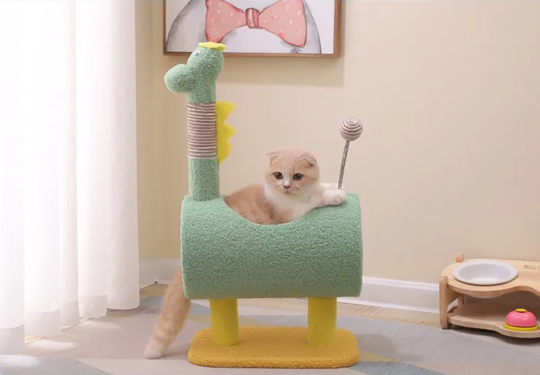 Klettergerät, Kratzbaum und Katzenhäuschen in einem stilvollen Design.