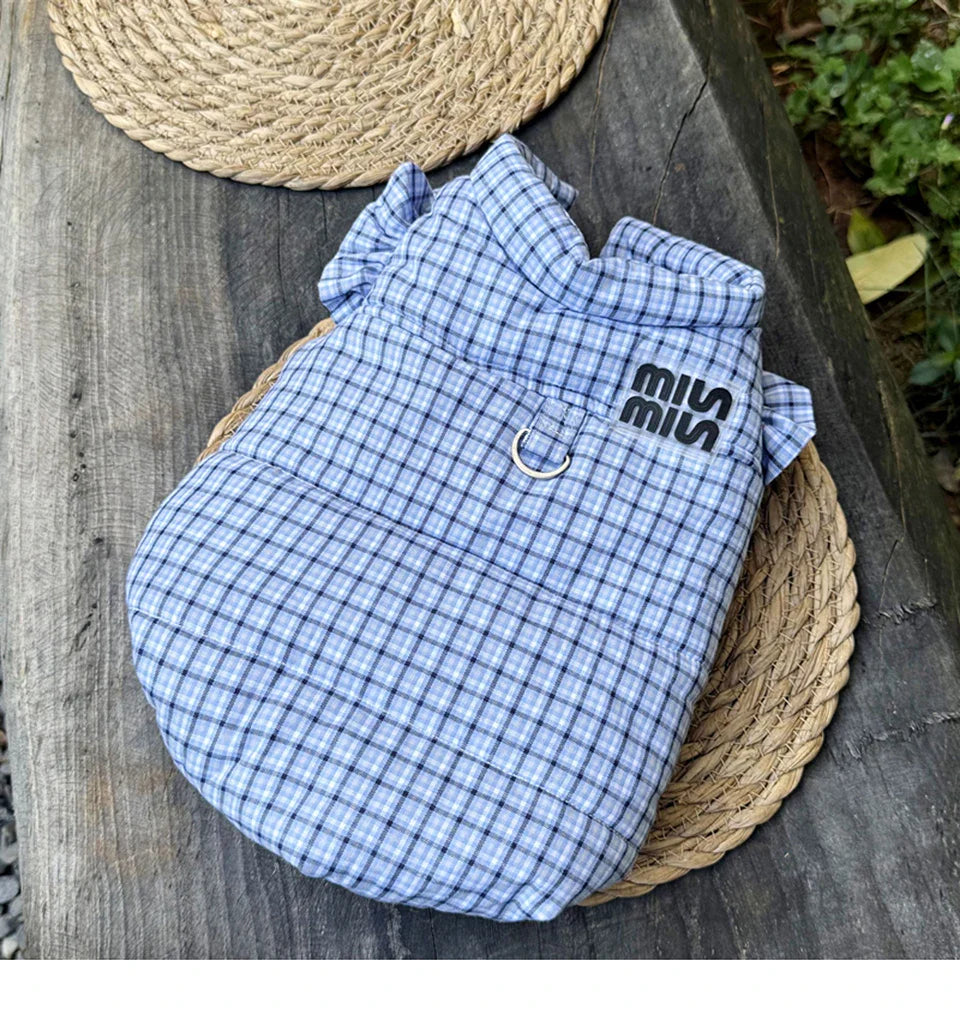 FellMode Winter Check Hundejacke – Modische Karierte Jacke mit Leinenhalterung für Kleine Hunde