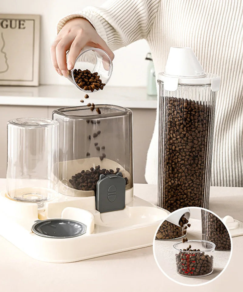 Mit cleveren Details wie Messbecher im Deckel, transparenter Wand und Ausgießtülle wird das Füttern deines Haustiers einfacher und sauberer als je zuvor.