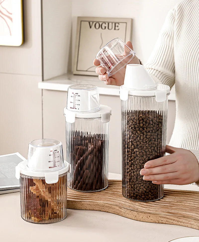 FreshBite Luftdichte Futterbox – 800/1350/1800ml für Hunde- & Katzenfutter mit Messbecher