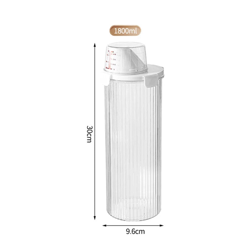 Merkmale: Luftdicht, integrierter Messbecher, tropffreies Ausgießen