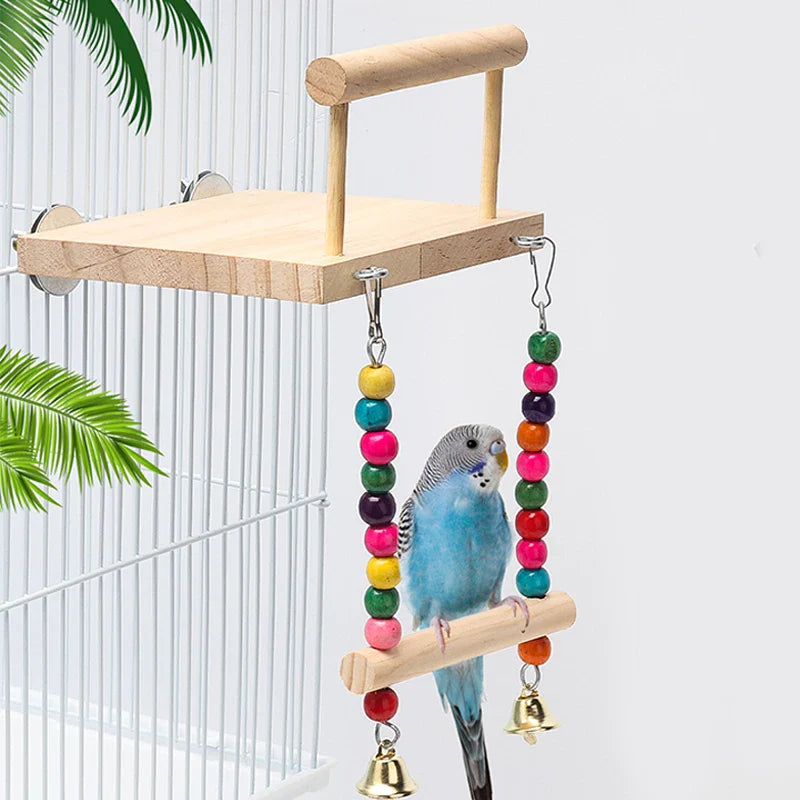 Holz-Papageienstange mit Nageperlen – natürlicher Spielplatz