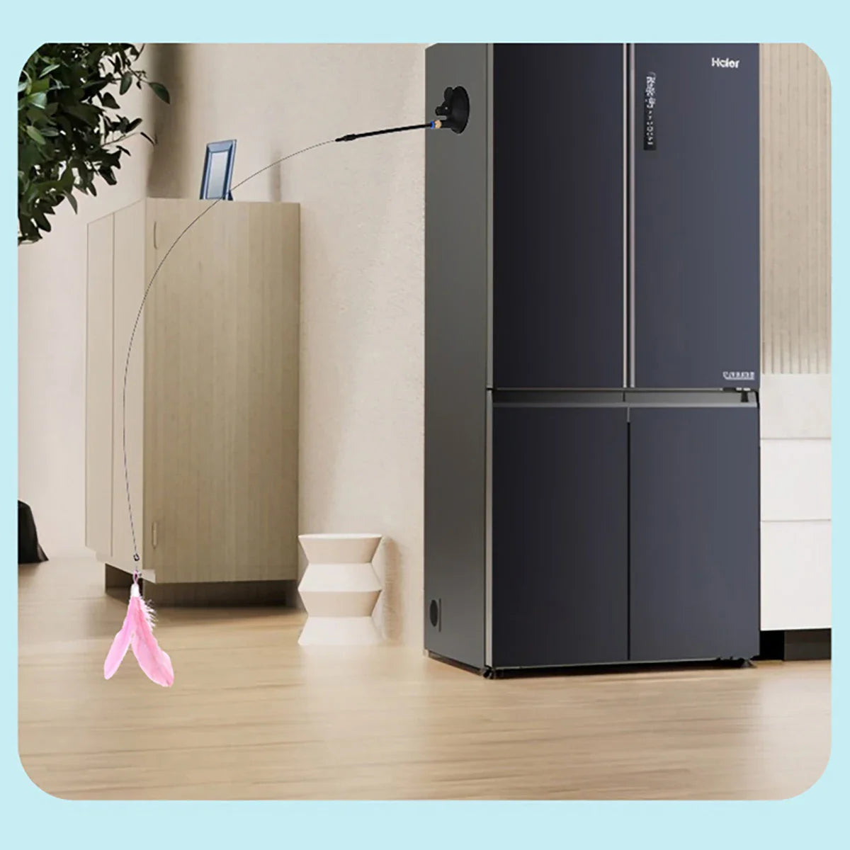 Flexibler Stab und Saugnapf: Der elastische Stab sorgt für eine federnde Bewegung, die Katzen herausfordert. Der Saugnapf kann auf glatten Oberflächen befestigt werden, sodass deine Katze selbst spielen kann.
