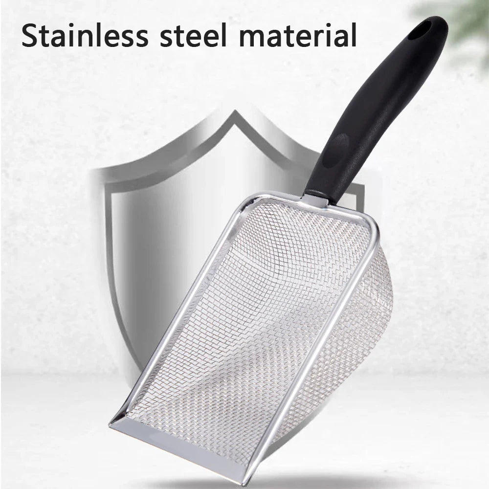 Katzenstreuschaufel aus Edelstahl – Silber, mit Aufhängehaken und Komfortgriff
