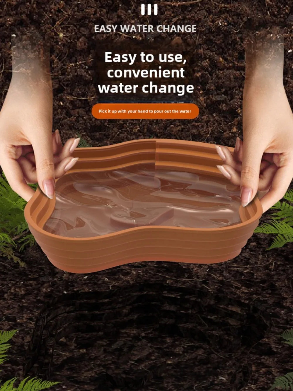Hergestellt aus robustem, langlebigem Kunststoff, ist die Schale leicht zu reinigen und in mehreren Größen und Farben erhältlich. Das moderne Erscheinungsbild lässt sich perfekt in jedes Terrarium einfügen.