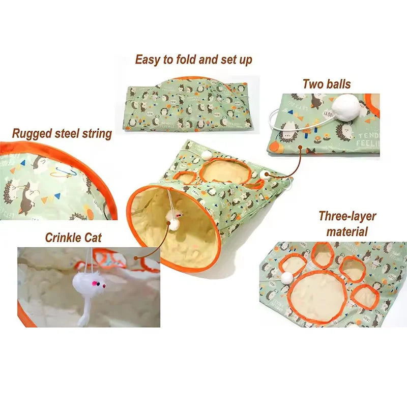 Knispernder Selbstspiel-Katzen Tunnel – Bissfestes Polyester Spielzeug