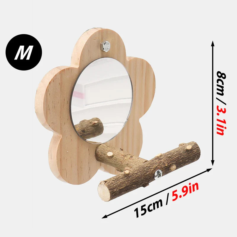 Vogelsitzstange aus Holz mit Spiegel – Natürliche Sitzplattform Größe S/M