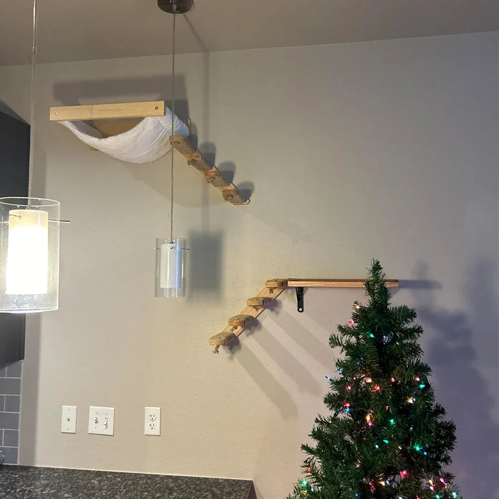 Wandmontiertes Katzenklettergerüst aus Holz – mit Kratzbereich und Nest